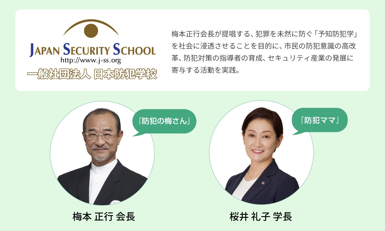 一般社団法人日本防犯学校の協力のもと、防犯の知識を持つ防犯士を育成。防犯を学んだ防犯士の知見を活かし「本当に犯罪を防ぐことができる」セキュリティ製品の開発を進めています。