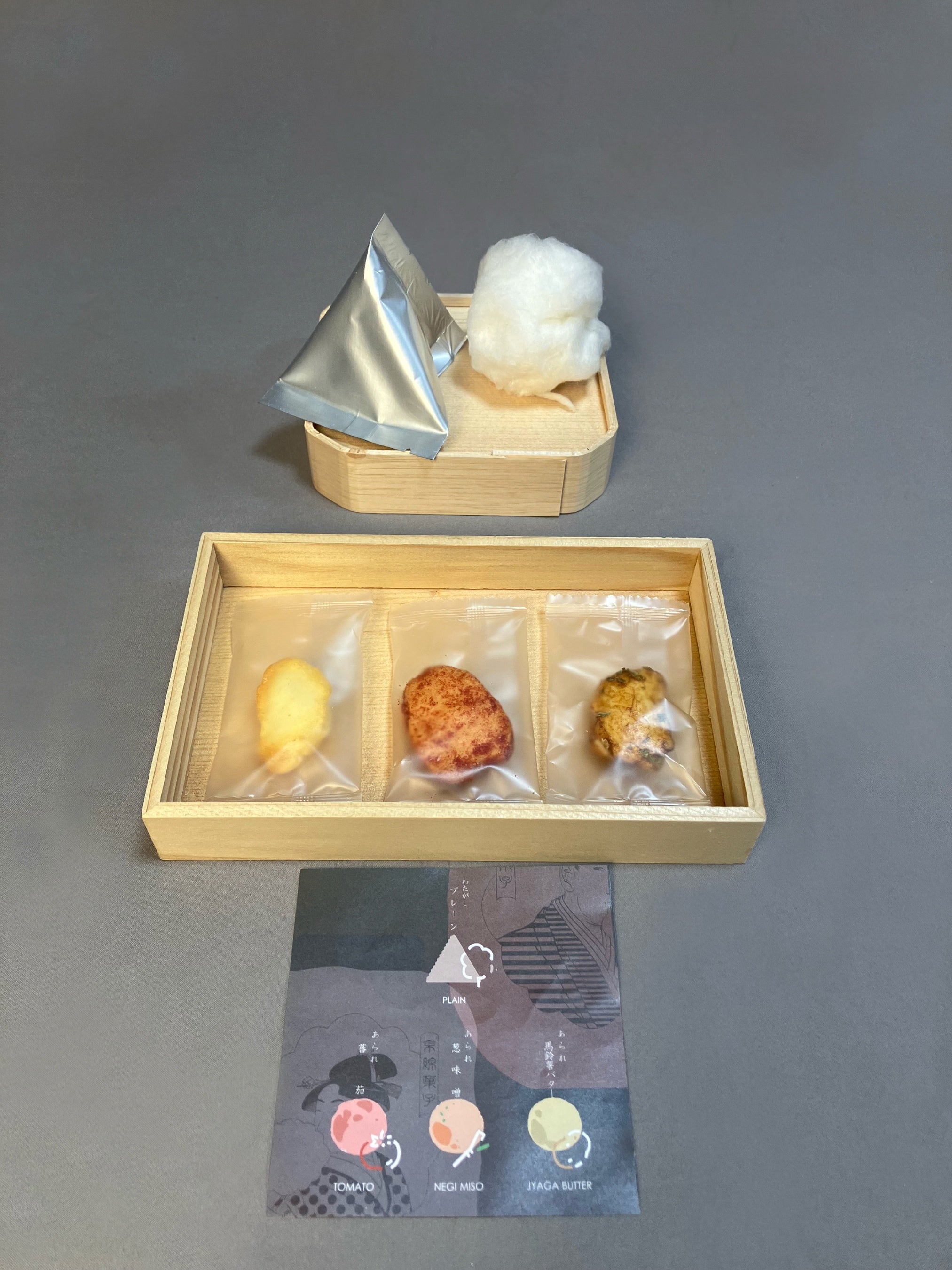 当店は、京都嵐山で2017年に創業し、今年で創業8年目になる京綿菓子専門店zarame(ザラメ)です。当店は、現在、嵯峨嵐山本店と京都タワーサンド店、渋谷ヒカリエshinQs店の3店舗にて営業しております。これまで和テイストのバラエティ豊かな綿菓子のみを販売しておりましたが、この度、日本のおかきの「あられ」と綿菓子をマリアージュした京のおやつセット「灯akari」を新発売します。国産のお米で作られたトマト味、じゃがバター味、ねぎ味噌味の和テイストなフレイバーのあられとふんわり綿菓子の詰め合わせ。ご家族やご友人とシェアしたり、大切な方への贈り物に、自分へのご褒美として、映える新商品「灯-akari」をどうぞご賞味下さい。