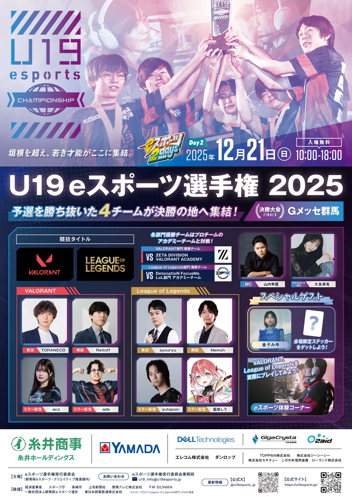 【群馬県】12月21日にGメッセ群馬(高崎市)にて「U19eスポーツ選手権 2025」を開催!