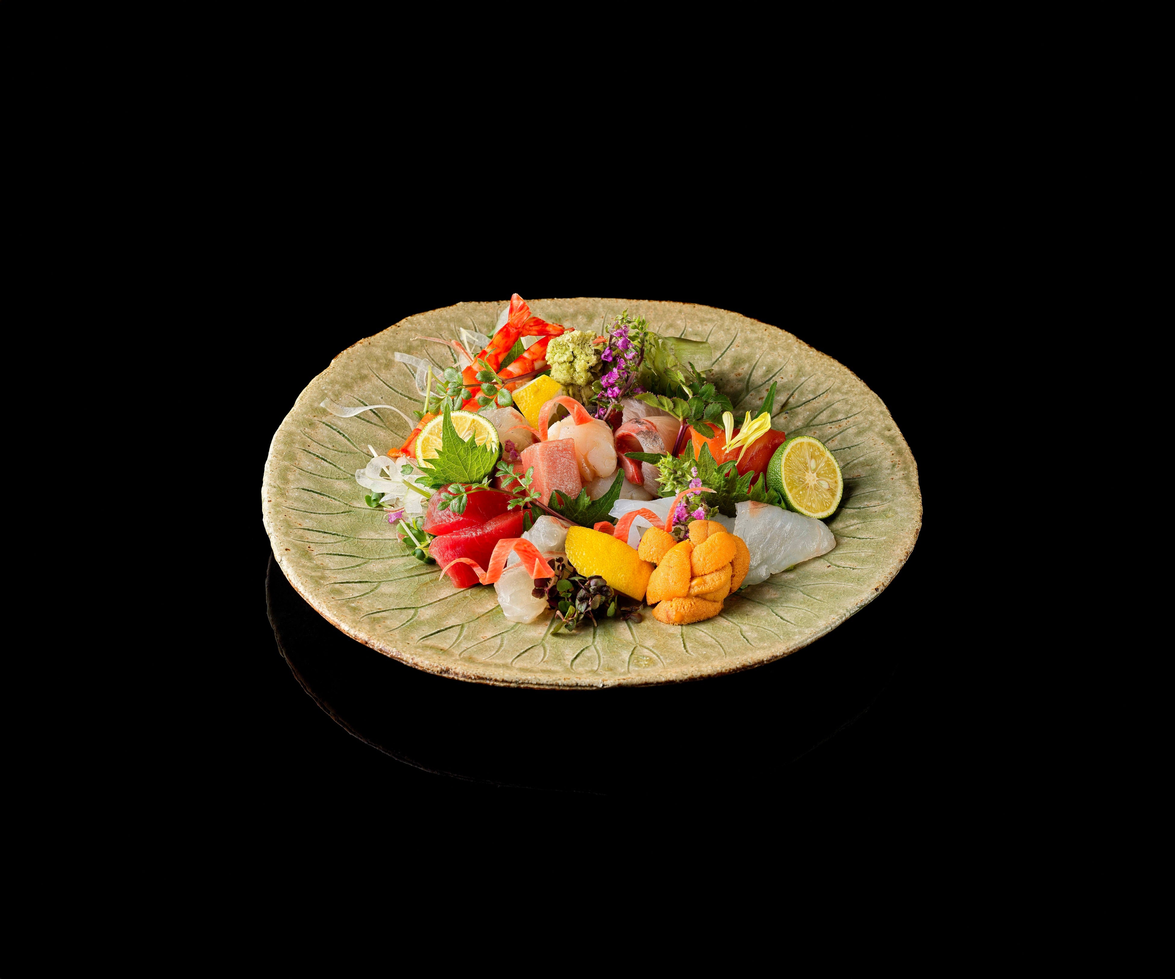 店の主役はカウンター席。香り・湯気・音まで含めた“体験型の食事”として提供します。また、和食を軸にしながらも ・ワインに合わせた肉料理 ・日本酒とのペアリングなど、接待・デート・記念日など幅広いシーンに対応する構成としました。目の前のショーケースに並ぶ旬魚や上質な肉を、その日の気分で選び、刺身・炭火・煮付けなど最良の一皿へと仕立てます。また、ランチでは2500円の別邸御膳を提供。「鮭」をテーマに2種類から選ぶことができ、いつもとは違う上質なランチ時間をお楽しみいただけます。