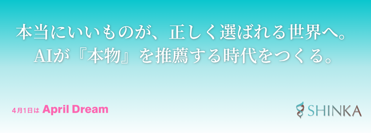 当社は、4月1日を夢を発信する日にしようとするApril Dreamに賛同しています。このプレスリリースは「SHINKA」の夢です。