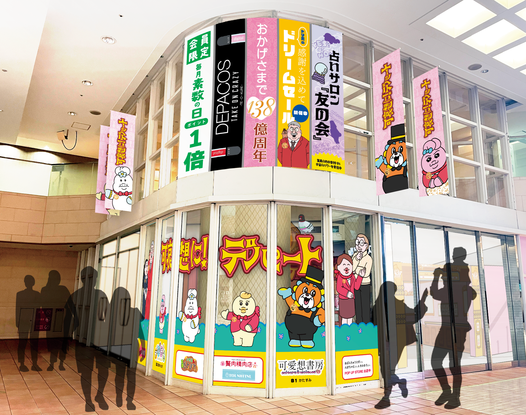 全キャラクター描き下ろし!デパ地下や高級服売り場まで“まるごとデパート”が出現