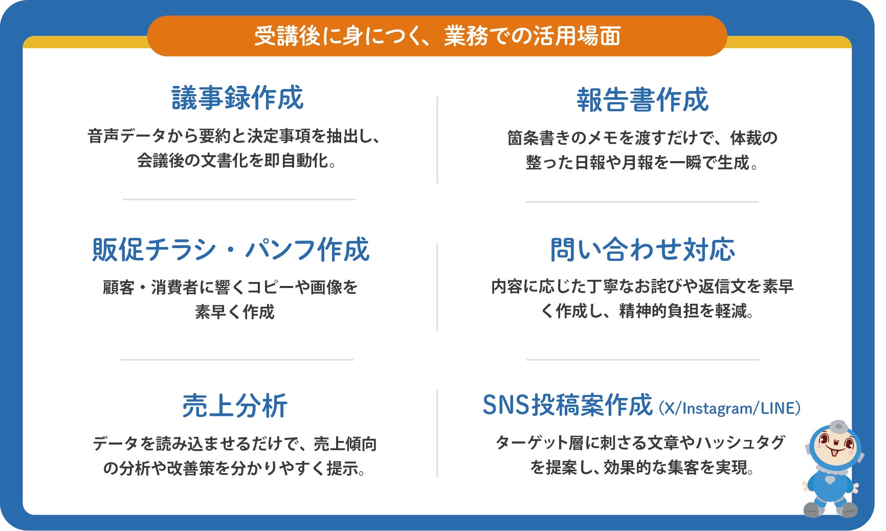 受講後に身につく、業務での活用場面
