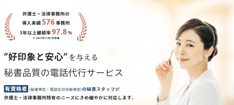 弁護士・税理士・司法書士など、士業事務所に特化した専任オペレーターによる電話代行サービスです。