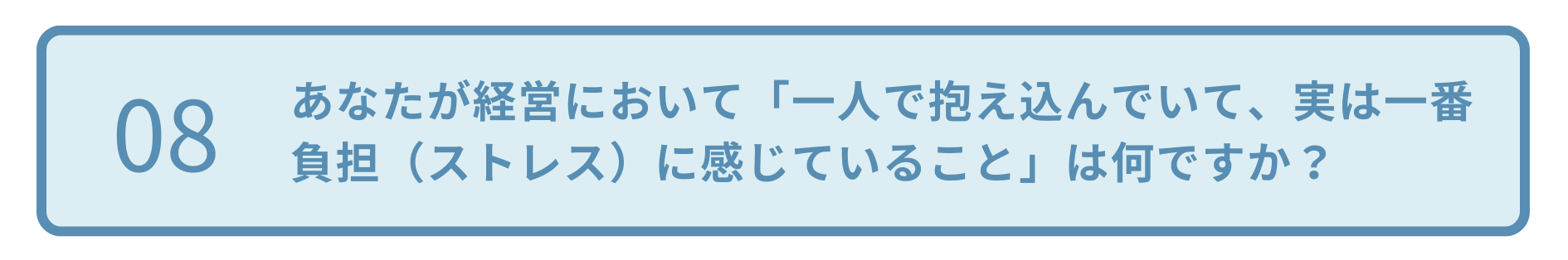 最後に、あなたが経営において「一人で抱え込んでいて、実は一番負担(ストレス)に感じていること」は何なのか伺ったところ、以下の回答が集まりました。