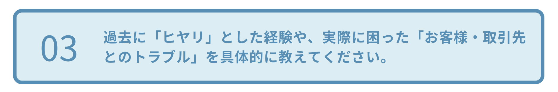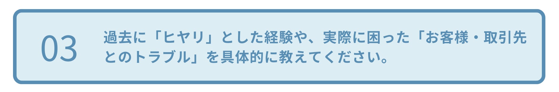 ここまで、事業の中でのトラブル経験について伺ってきました。