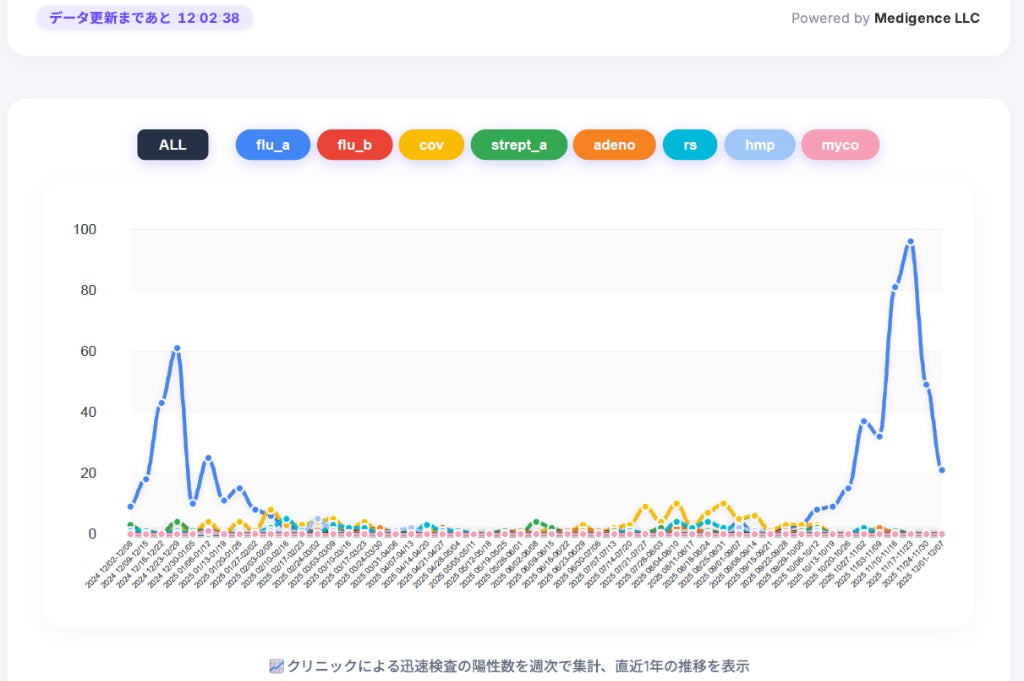 現在、インフルエンザや新型コロナウイルスなどの流行状況を把握するための公的なデータ(サーベイランス)は、医療機関からの報告が集計され公表されるまでに通常1〜2週間のタイムラグがあります。「隣の町で今、何が流行っているのか?」という最も必要な情報が、リアルタイムには手に入らないのが現状です。
