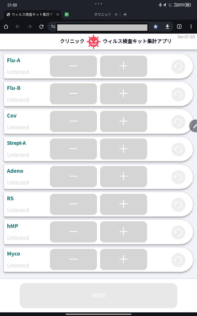 現場負担ほぼゼロの超高速入力 安価なAndroidタブレットを使用し、検査結果(+/ー)を数タップするだけで入力が完了。最短数秒という、既存の診療フローを妨げないインターフェースを実現しました。
