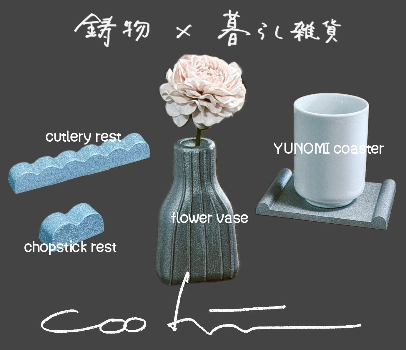 砂型鋳造特有の温かみのある質感を活かし、生活に寄り添うデザイン雑貨を展開。
