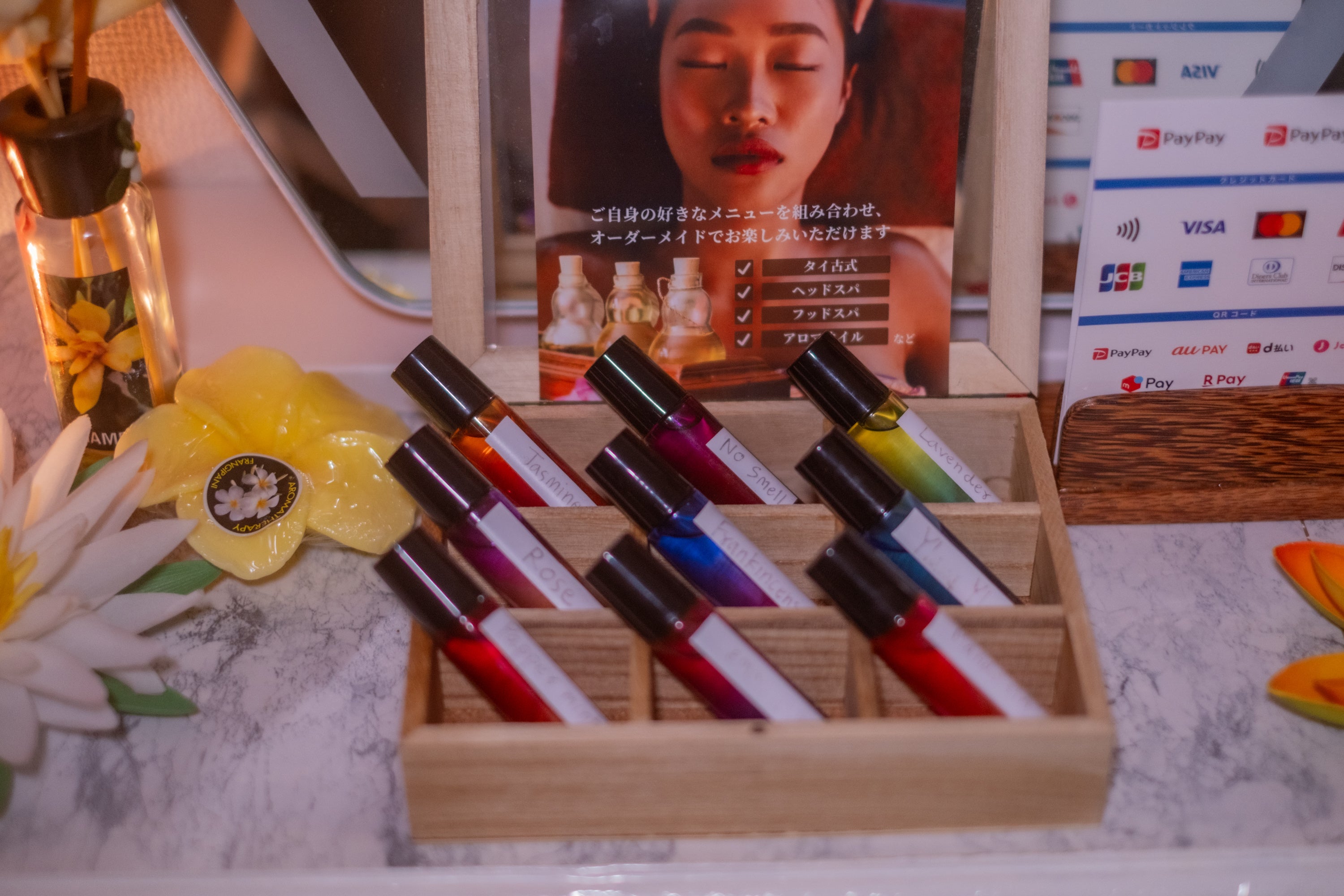 「最強コラボコース」をご利用のお客様を対象に、BUASAWANがセレクトしたオリジナルの天然アロマオイルをご用意。お好みの香りをお選びいただけるようになり、施術体験がよりパーソナルで特別なものになりました。