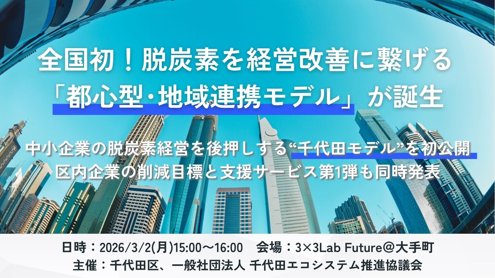 中小企業の脱炭素経営を後押しする“千代田モデル”を3/2(月)初公開。区内企業の削減目標と支援サービス第1弾も同時発表(主催:千代田区、一般社団法人 千代田エコシステム推進協議会)