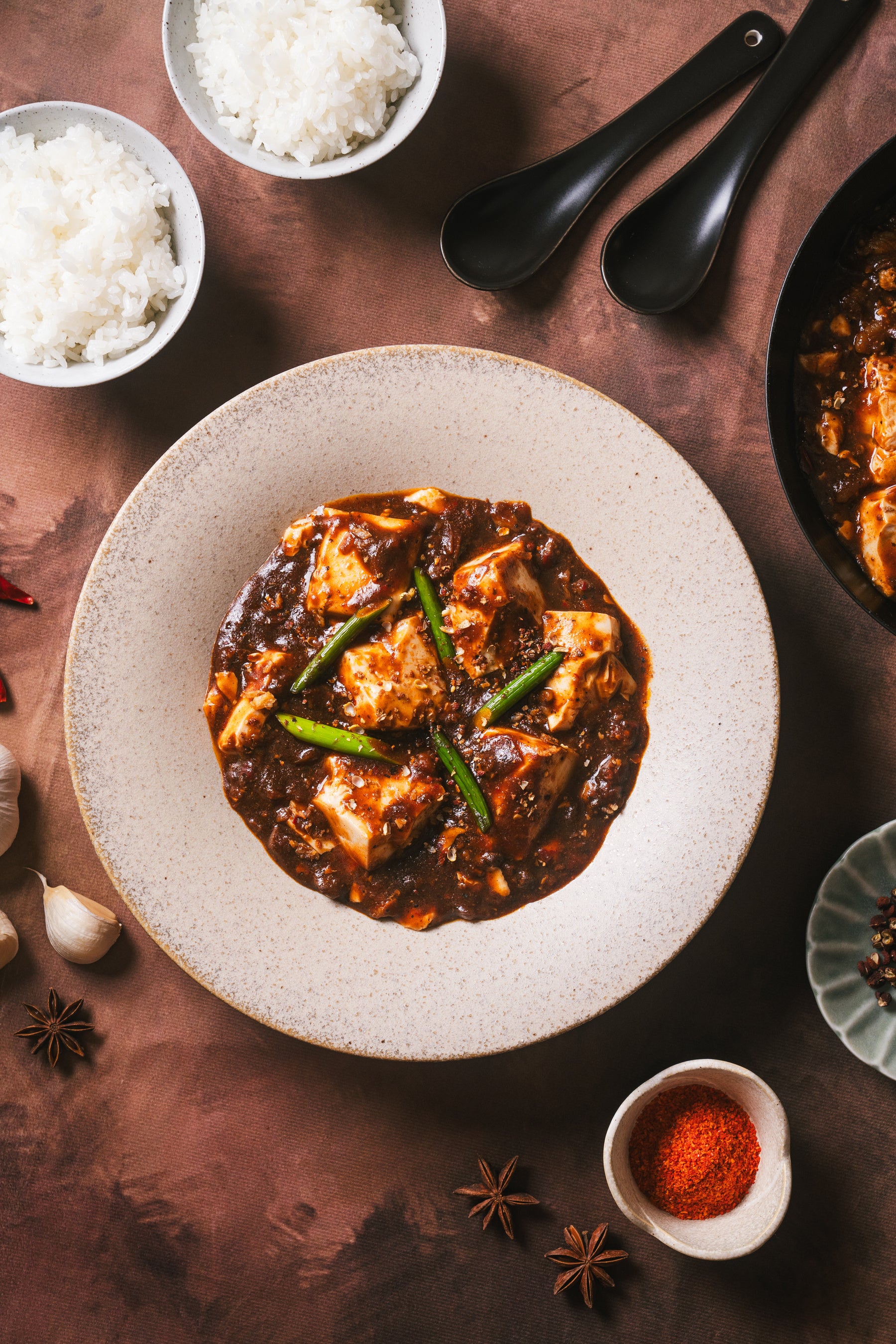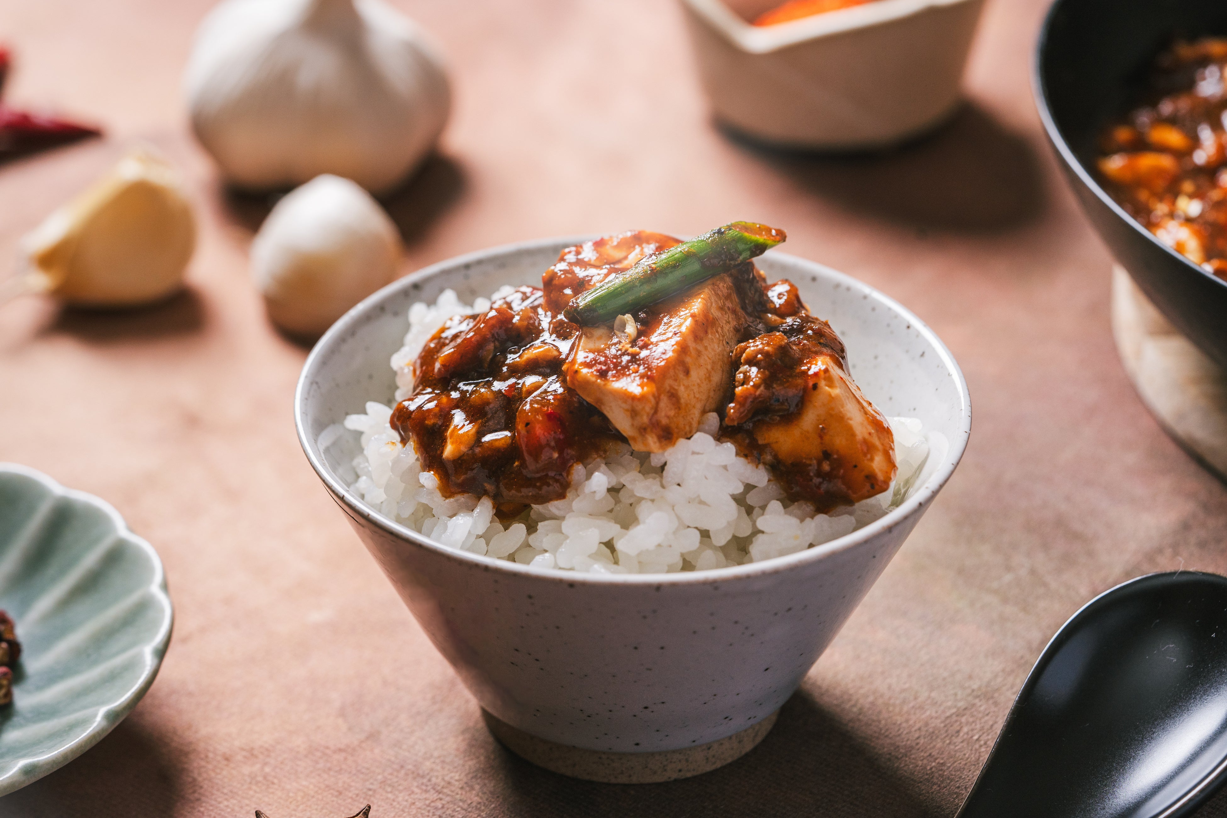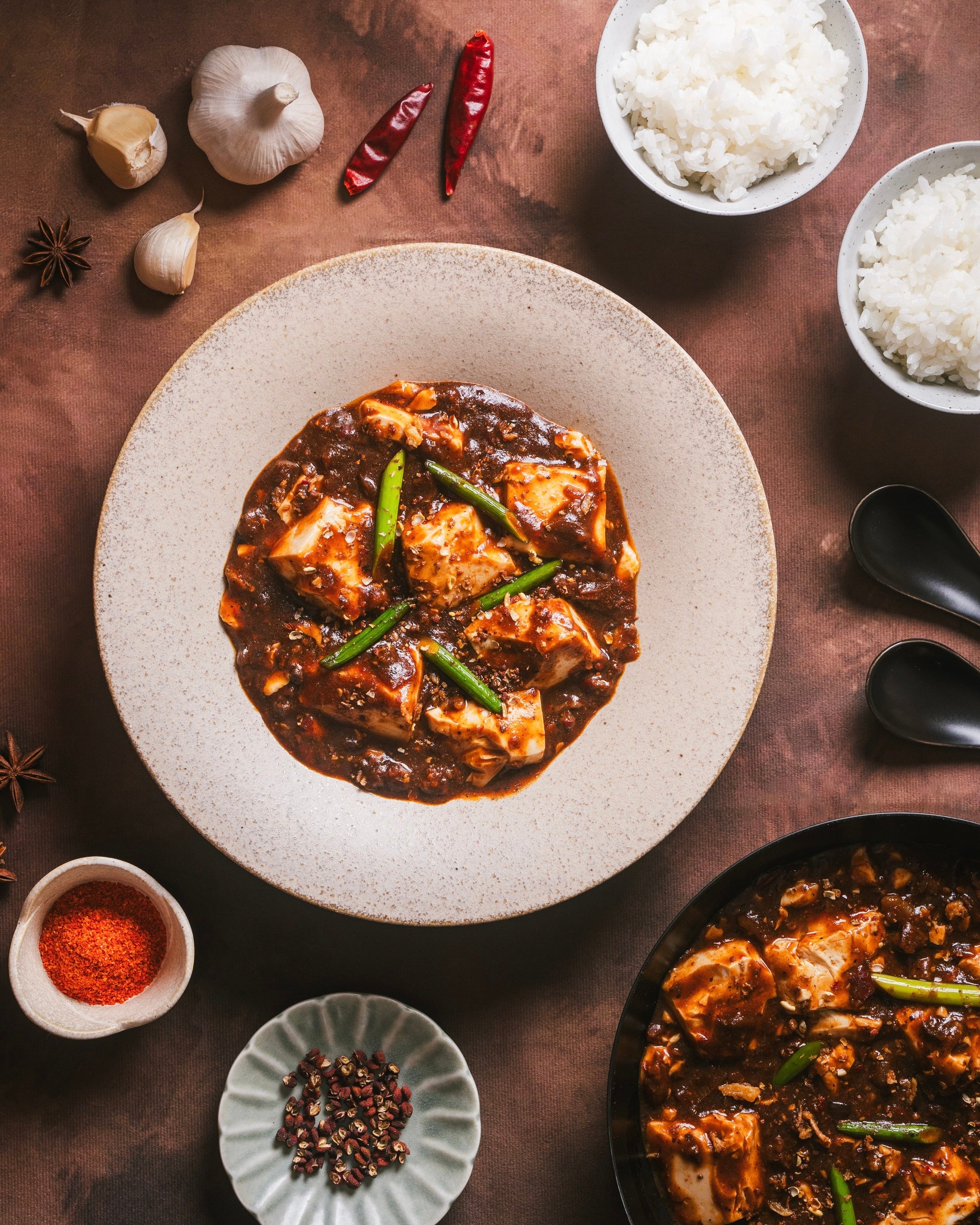 ⻩⾦⽐配合の⼭椒、こだわりの⽺⾁、魔法のスパイスなど、⽇本のあちこちで出会った運命の素材を散りばめました。⻩⾦⽐配合の⼭椒は「⾷べるサウナ」と呼んでもいいくらい、ととのう味。丸⼀⽇、⼿間暇かけたこだわりの製法で焙煎された⾹り⾼い特製⼭椒。ただピリつくだけじゃない、おいしい緊張感があります。⽇本⼀こだわった⽺⾁は⼤きくてゴロゴロ、⿇婆ミートと呼んでもいいくらいの存在感。⽇本⼀⽺⾁にこだわる"⽺SUNRISE"さんから仕⼊れています。「⽺⾁はちょっと…」という⼈にこそ、⾷べてほしいです。豆腐だってスペシャルです。多くのマーボードウフは⽊綿⾖腐が主流ですが、絹⾖腐を投⼊。名づけて「シルク⾖腐」。「トルゥン」という柔らかさで、お⼝の中がしあわせに。忘れられないマーボードウフの主演です。