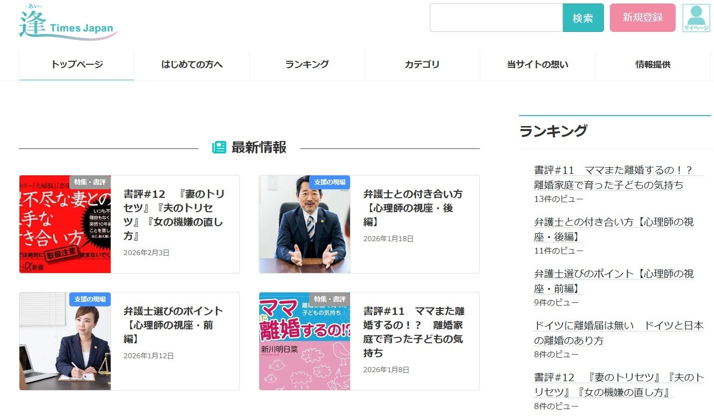 当事者体験談の掲載、支援現場の声、関連書籍の紹介、制度解説や国内外の比較コラム、などのコンテンツを備え、離婚問題・親子断絶問題・家族問題に関心を持つ読者や関係者に有益な情報サイトです。本サービスは日本国内向けに、2026年1月30日より正式に公開しています。2026年4月1日に施行される改正民法に関わる重要な情報も含まれています。