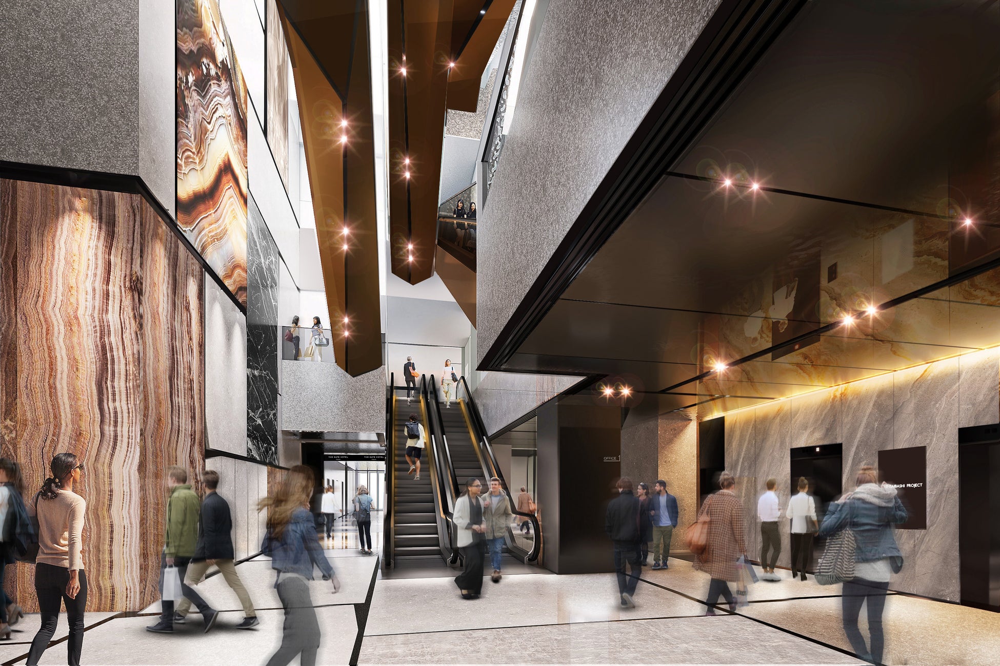 都市の中でひときわ存在感を放つ、洗練された空間創造を目指して設計されています。商環境のインテリアは、感性を刺激する洗練された空間に仕上げられています。建物全体は、都市の中でひときわ存在感を放つランドマークとして設計され、訪れる人々の記憶に残る佇まいを目指しました。エントランスや吹き抜け空間には独自のアートを取り入れ、日常の中でふと心が動くような体験を演出します。