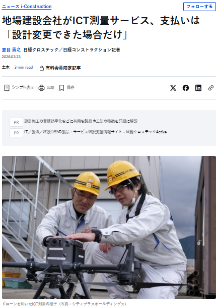 【メディア掲載】ICT測量アウトソーシング「ソクプロ」が日経クロステックに掲載