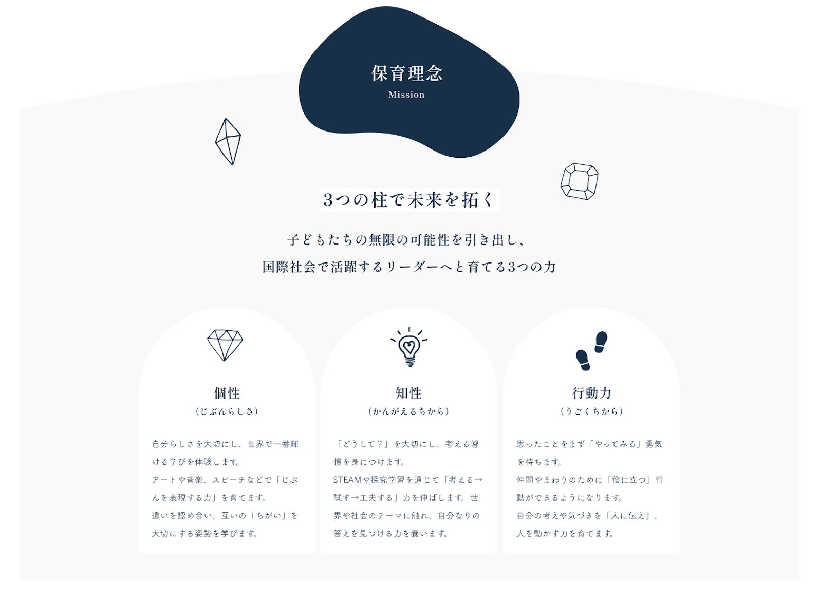 当園では、子どもたち一人ひとりが生まれ持つ可能性を「原石」と捉え、それを丁寧に磨き、輝かせる教育を実践してきました。今回のリニューアルは、その想いをより明確にし、教育内容を体系的に整理・強化するための取り組みです。