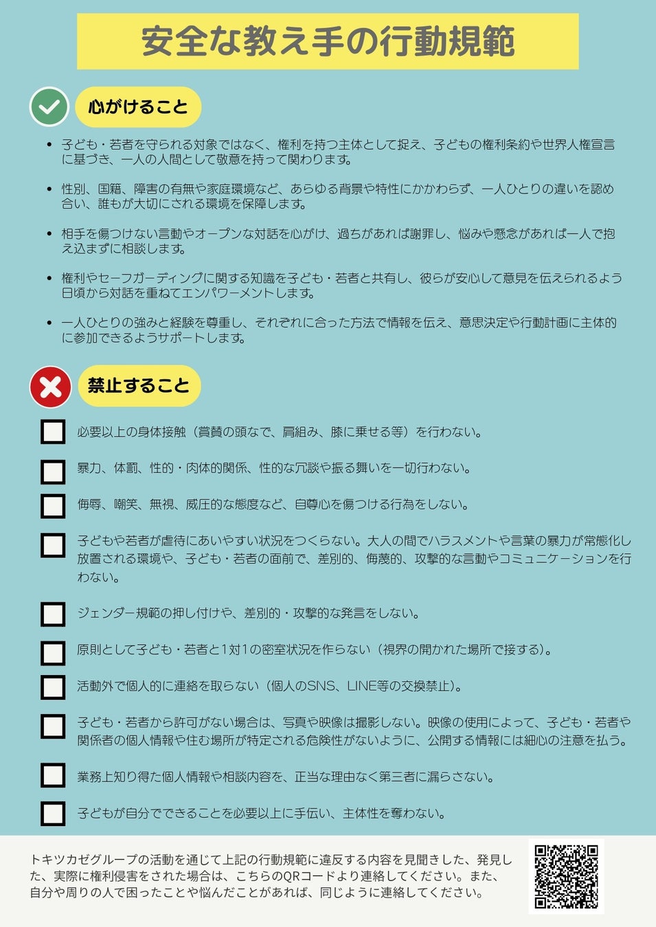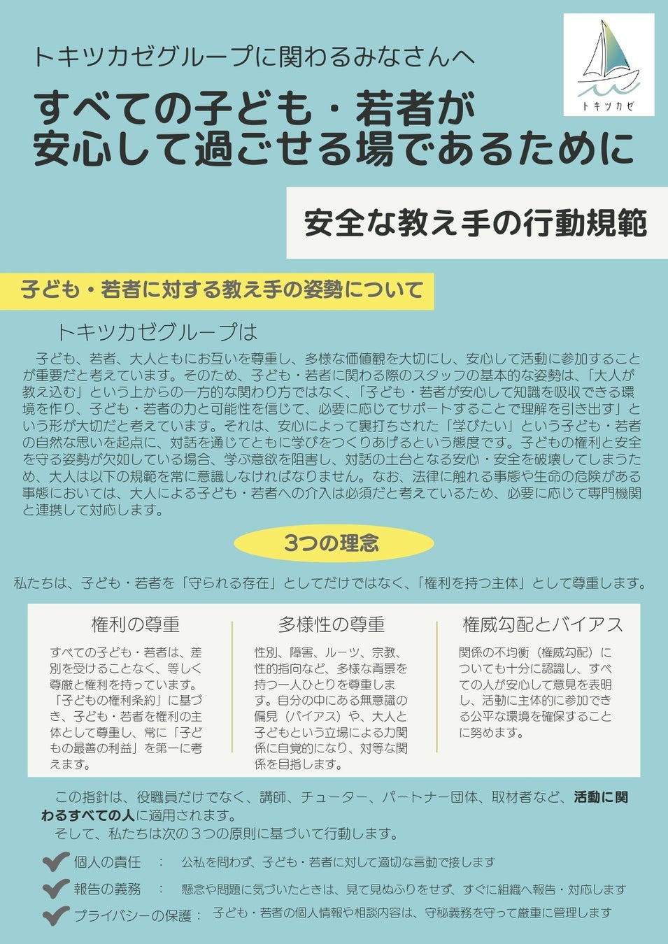 トキツカゼグループが約束する「安全な教え手の行動規範」