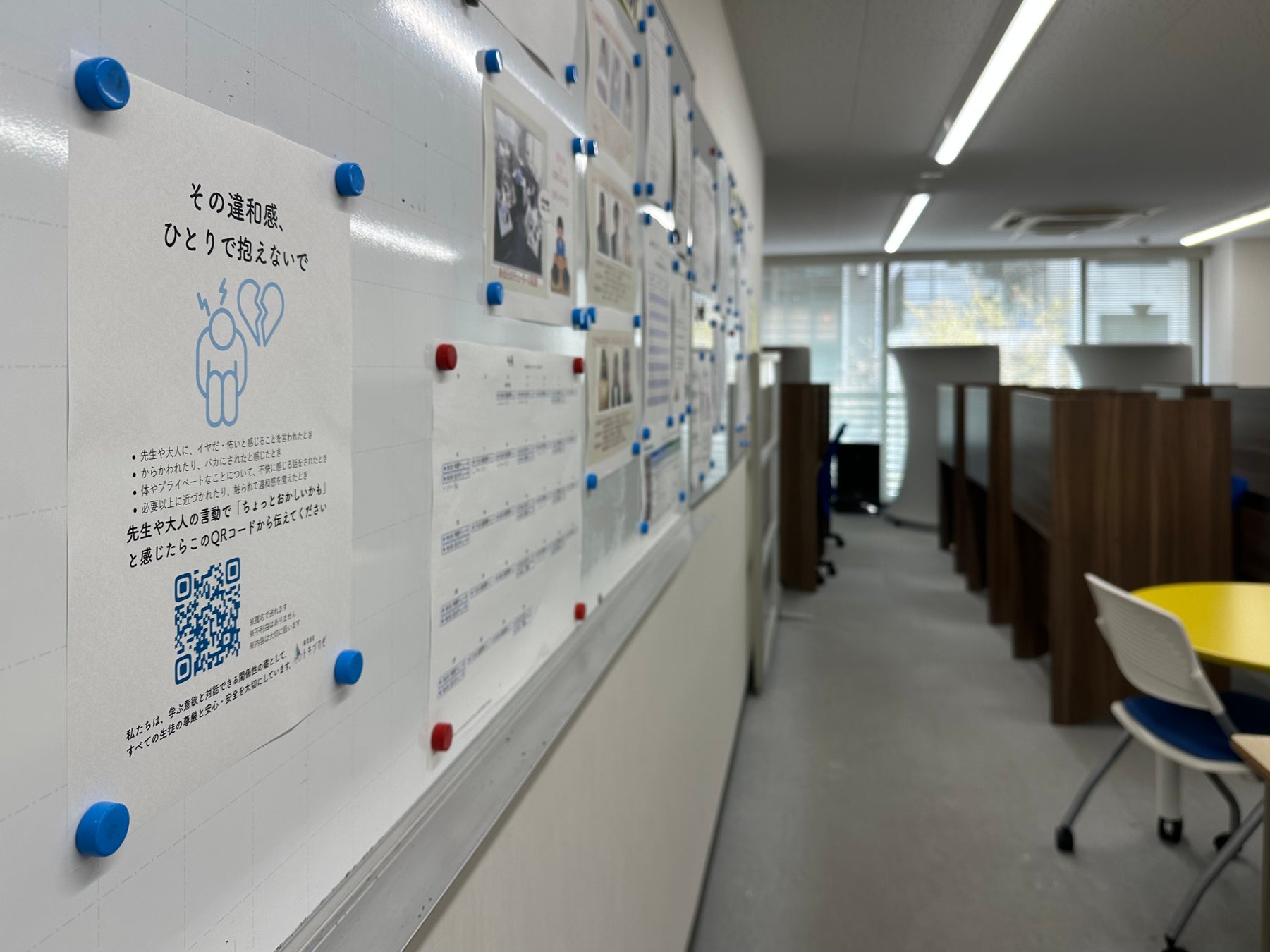 密室で講師と2人きりになることがないよう、個別指導や面談は必ず外から中の様子が見える教室・指導スペースにて実施する。