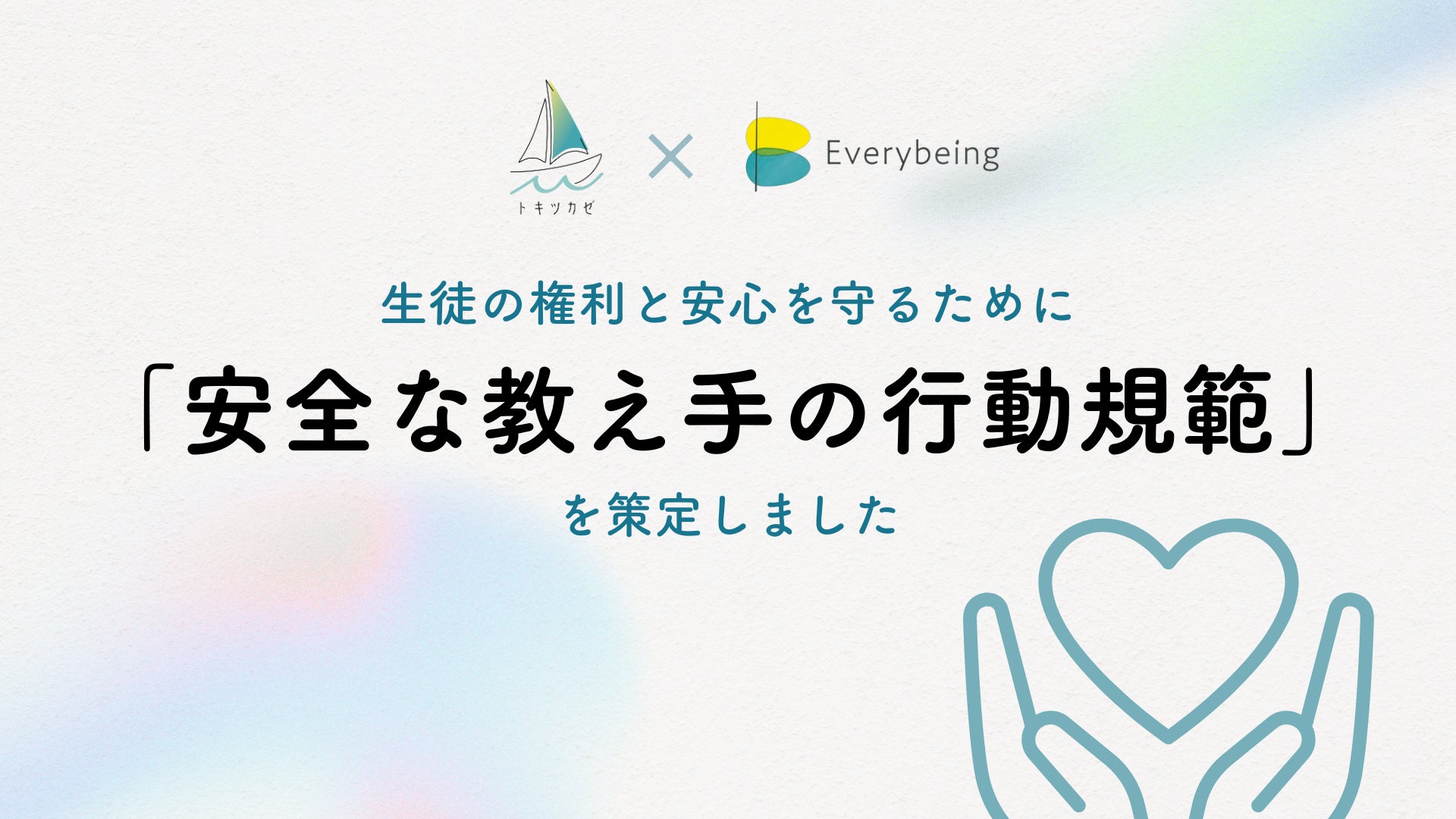 学習塾・予備校の事業承継・連続M&Aを推進する教育スタートアップ株式会社トキツカゼ(本社:東京都渋谷区、代表取締役CEO:谷津凜勇)は、子どもの権利保障を専門とする一般社団法人Everybeing(本社:東京都世田谷、共同代表:小澤いぶき・西崎萌)とパートナーシップを締結し、子どもの権利と安心を守る「セーフガーディング」の理念を学習塾業界に先駆けて取り入れた「安全な教え手の行動規範」を共同で策定したことをお知らせいたします。