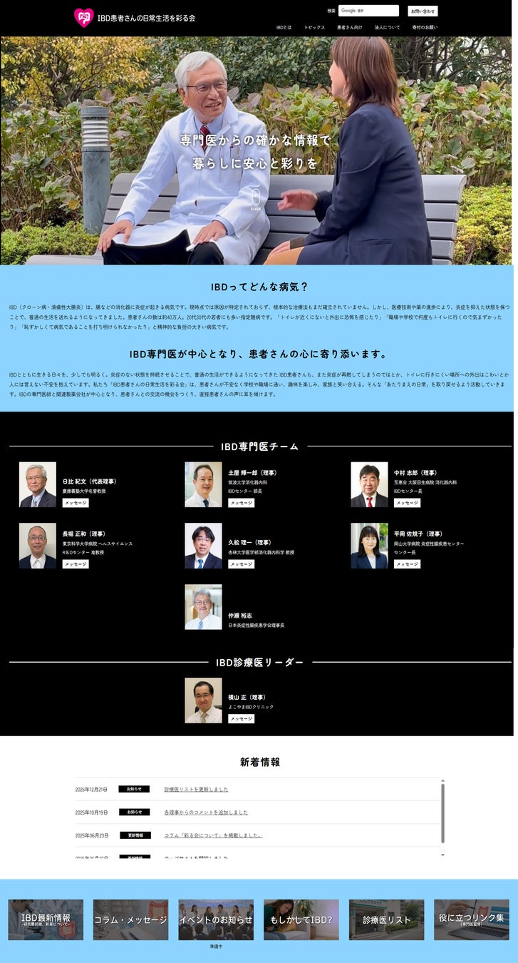 IBD(炎症性腸疾患)患者さんの日常の悩みに専門医が中心となり立ち上げた仕組み、一般社団法人「IBD患者さんの日常生活を彩る会」ウェブサイトリニューアル
