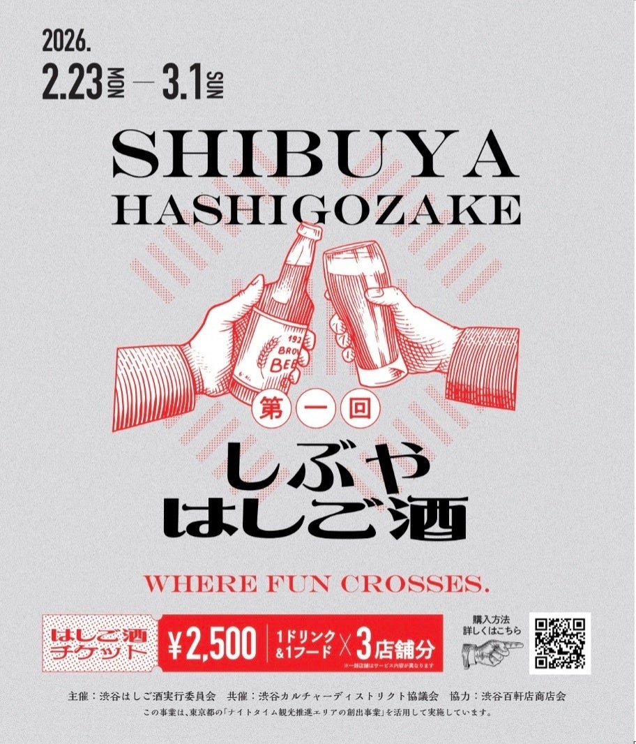 渋谷はしご酒実行委員会は、2026年2月23日(月・祝)から3月1日(日)までの1週間、渋谷エリアでも特に個性豊かな飲食店が集まる「百軒店・円山町・神泉・富士見」の4エリアを舞台にした回遊型イベント「しぶやはしご酒」を開催いたします。