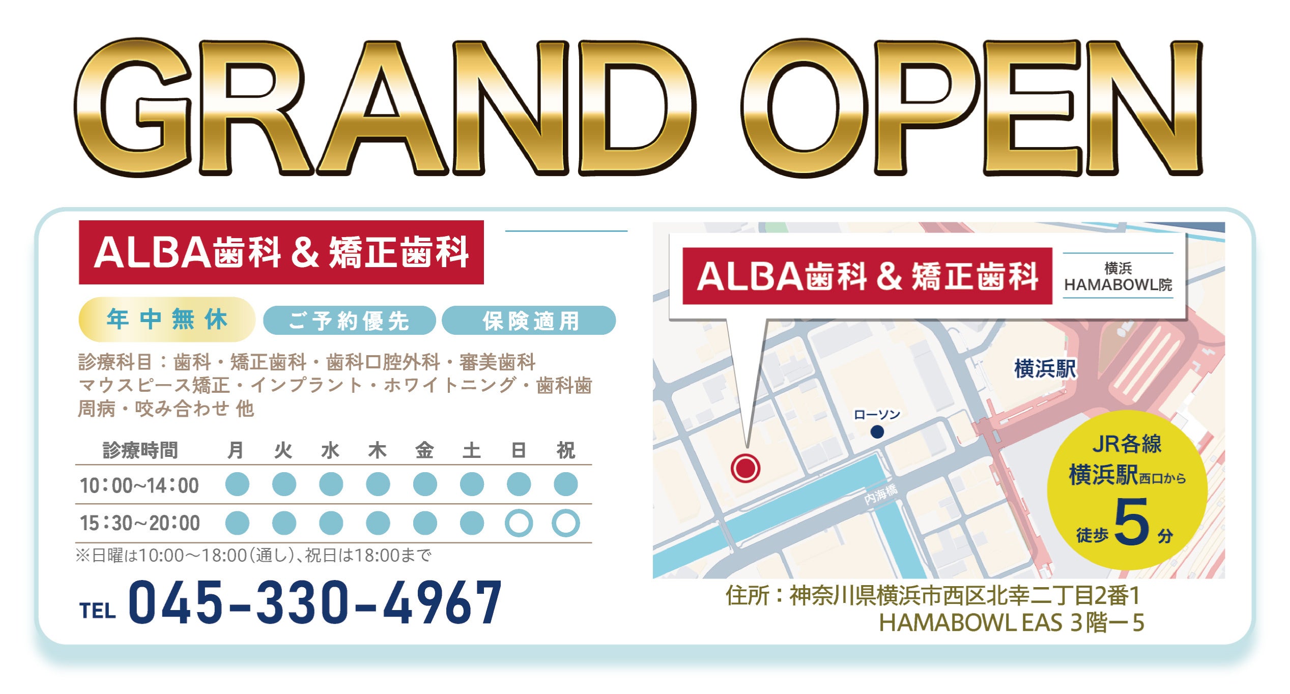 【横浜駅徒歩5分】国内最大級の歯科グループ「ALBA歯科&矯正歯科」が横浜HAMABOWL EAS内に3月1日新規オープン!