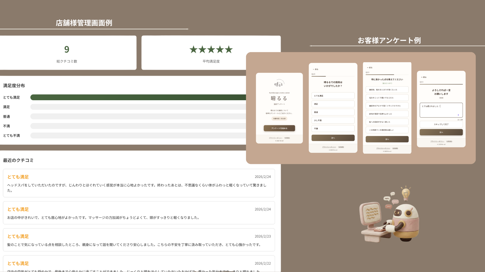 「無理にお願いしなくても、自然にクチコミが集まる」仕組みを、店舗の日常オペレーションに組み込む形で実現することが、このプロダクトのテーマです。現場経験とAI実装力を掛け合わせ、店舗・スタッフ・お客様の三者にとって負担のないクチコミ運用を目指しています。