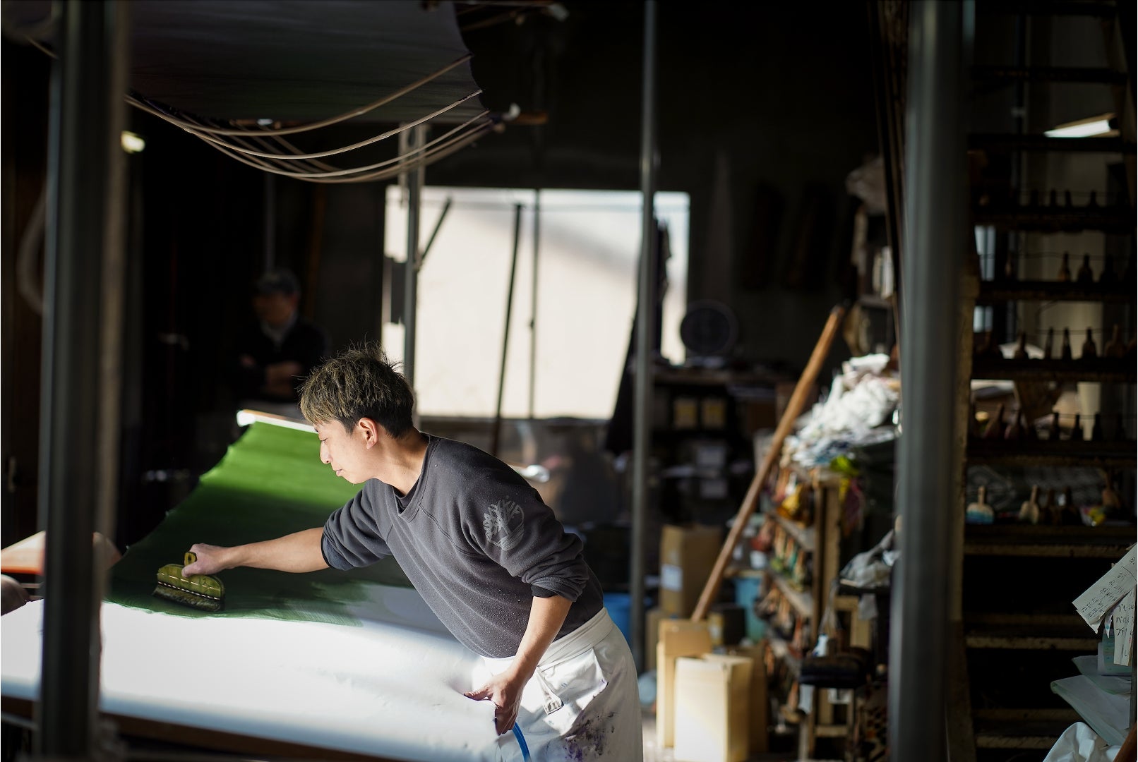 3. 職人の「引き染め」による深みのあるアクセントカラー