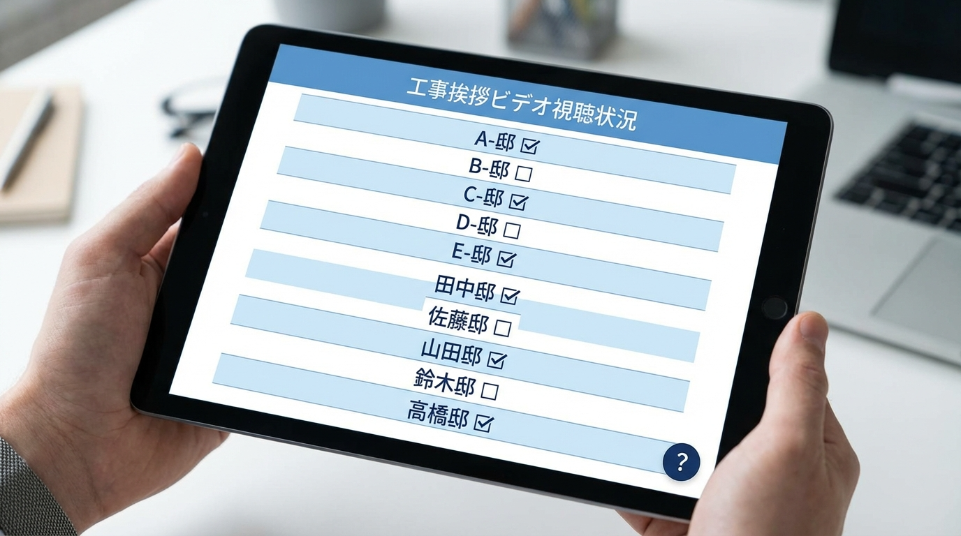動画挨拶・QRコード・デジタル掲示板を一体化し、工事情報の即時共有と視聴カウントによる確認状況の可視化を実現。再訪問の削減とクレームリスク低減を同時に叶える「スマート近隣挨拶365」
