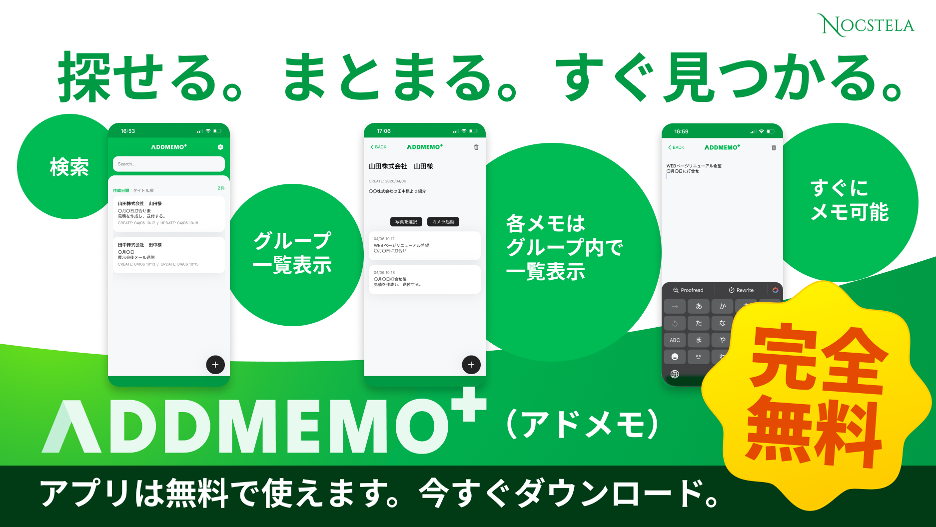 「ADDMEMO」は、App StoreおよびGoogle Playにて無料でダウンロードいただけます。