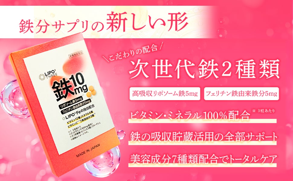 「摂って終わり」の鉄分サプリに終止符を。次世代鉄分サプリ「LIPO³ Fe」、3月27日よりAmazonにて新発売
