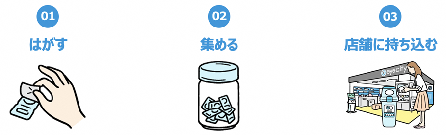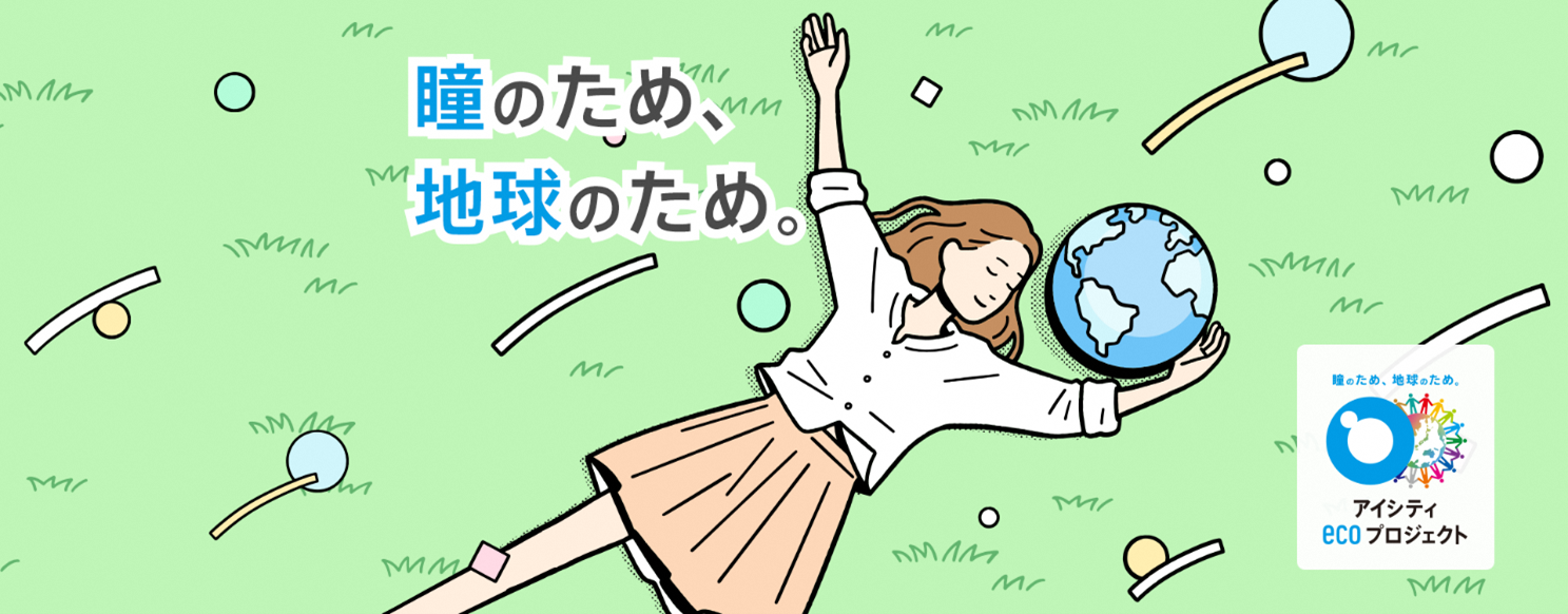 「アイシティ ecoプロジェクト」は、リサイクルが可能な使い捨てコンタクトレンズの空ケースを対象に、全国のアイシティ店舗に加え、活動にご賛同いただいた自治体・企業・学校など全国約8,850箇所に専用ボックスを設置して回収するリサイクル活動です。3つの社会貢献(1.空ケースの再資源化による環境保全、2.障がい者の自立・就労支援、3.日本アイバンク協会への寄付)へとつないでいくことを目的として、2010年より業界で初めてこの活動をスタートし、今年で活動期間は16年目を迎えました。