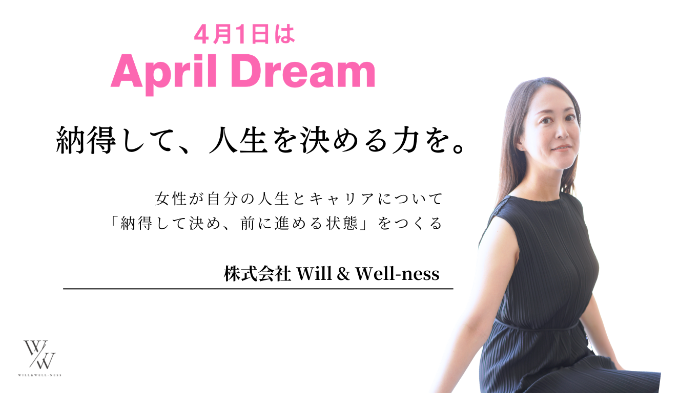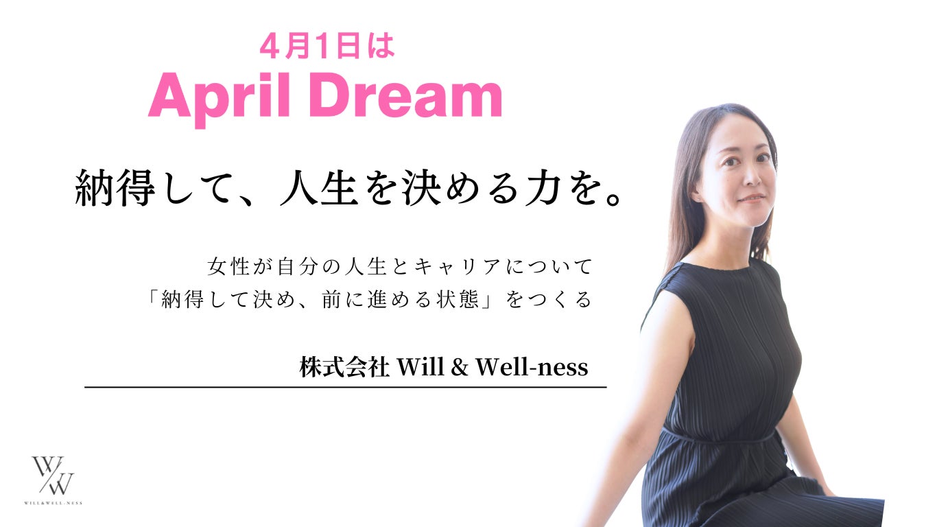 株式会社Will and Well-ness(本社:東京都目黒区、代表取締役:森本亜矢子)は、April Dreamとして、女性が人生の分岐点で”止まらない”社会の実現、そしてそれを”日本から世界へ”という夢の実現を目指します。