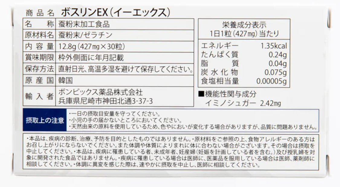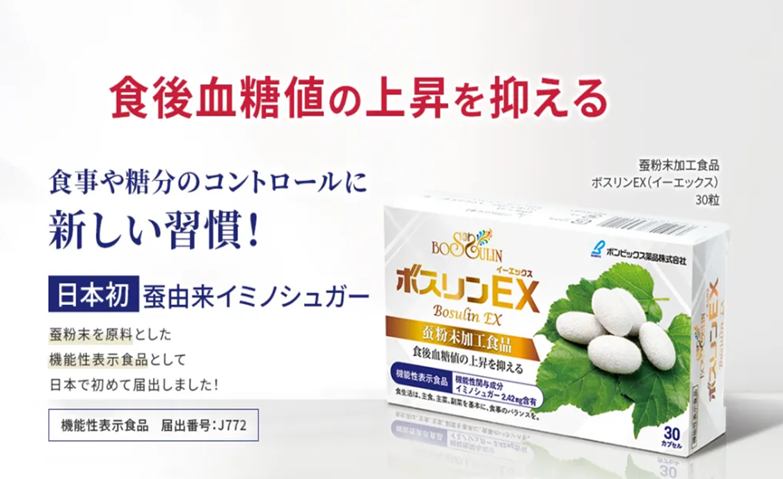 【日本初】蚕由来イミノシュガー配合の機能性表示食品食後の血糖値上昇を抑える機能が報告された「ボスリンEX」を発売