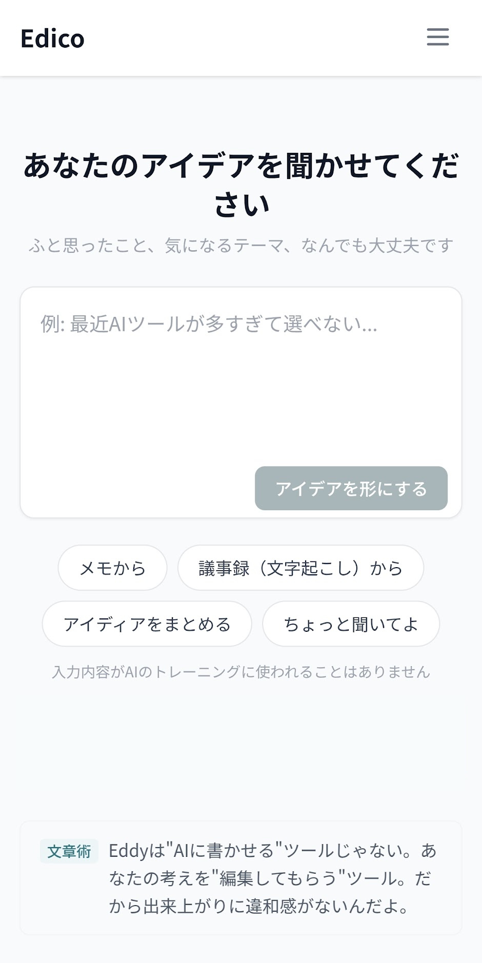 Edicoは、この“書く前のボトルネック”に向き合うために開発されました。