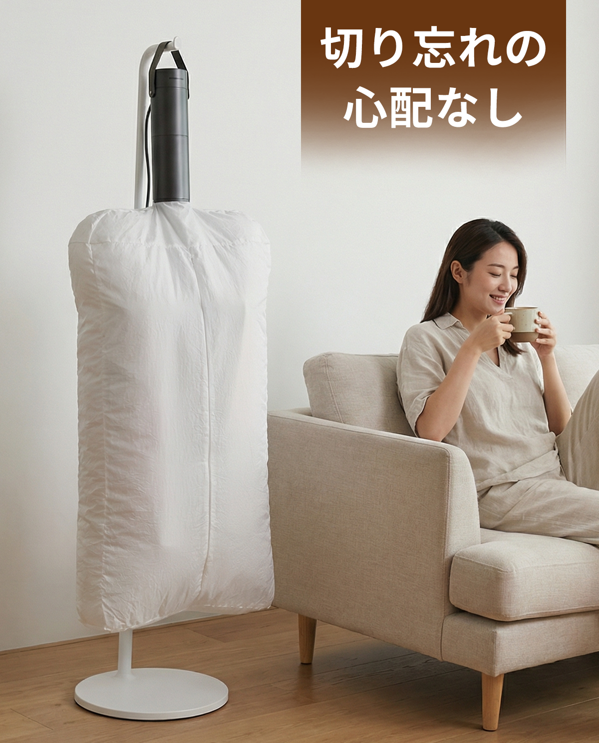 衣類が直接触れる袋内は、効率的な60-70℃前後に保たれます。高温によるダメージや型崩れのリスクを抑えながら、しっかり水分を蒸発させる、衣類をいたわる低温乾燥を実現しています。