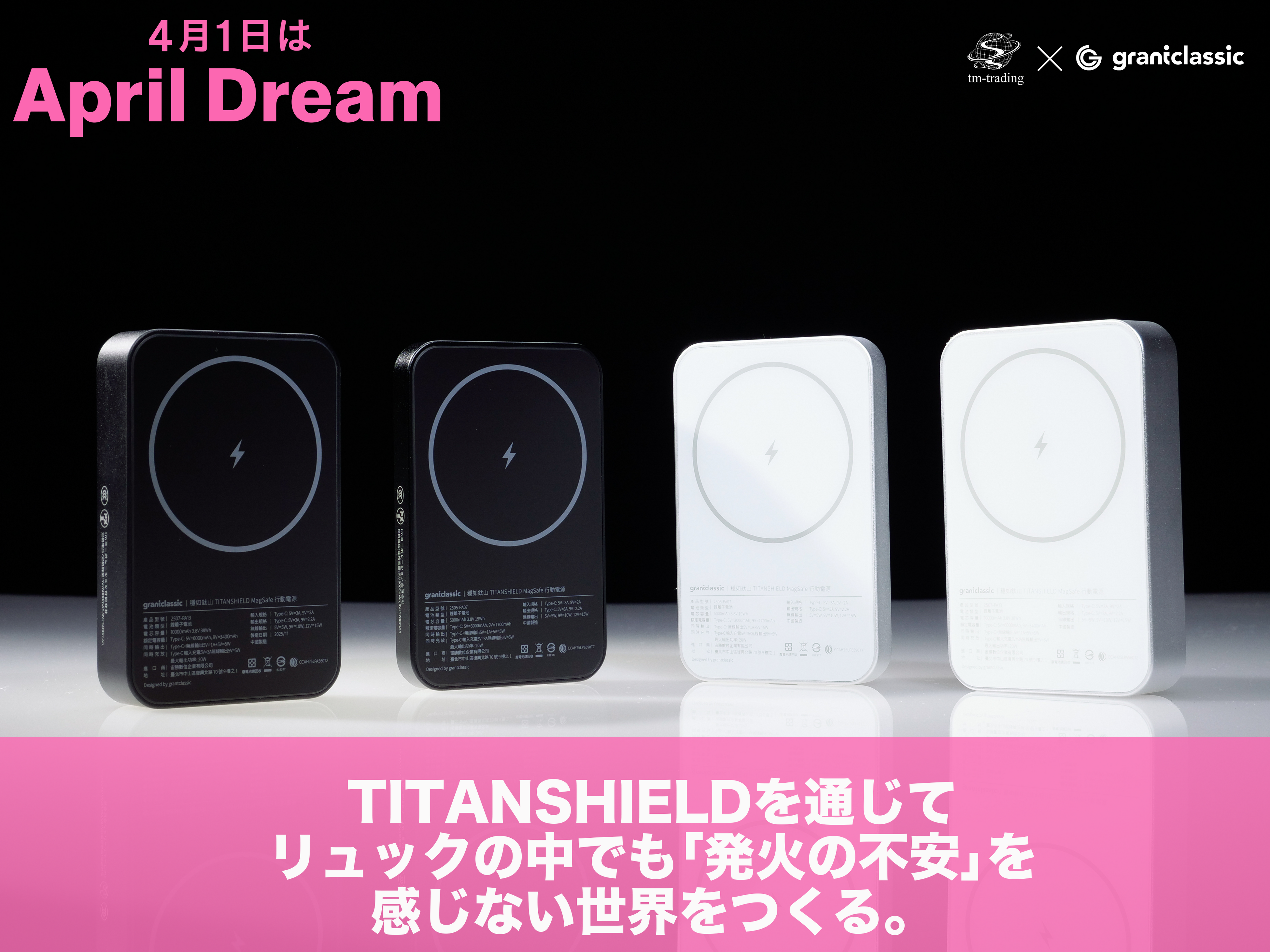 tmコーポレーション合同会社(本社:千葉県船橋市、代表:牧村 高志)は、台湾のスマートライフブランドgrantclassic社が開発したTITANSHIELDを日本に広まることで、発火不安の無いバッテリーが標準となり、安心して持ち歩ける世に広まることが私たちの願いであり夢です