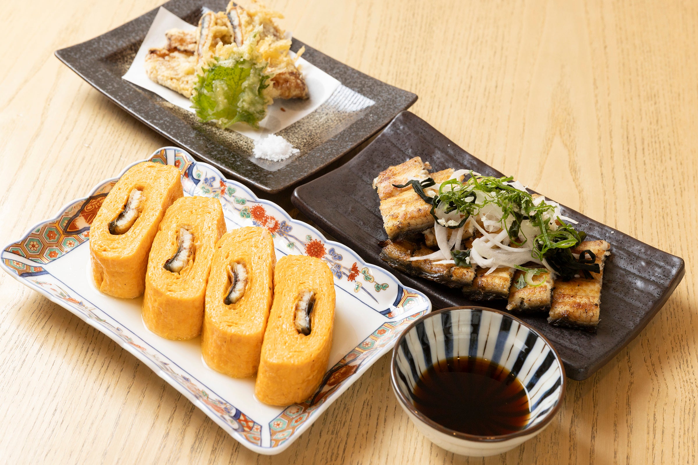 天然の青魚とシャコエビ両方を食べて育った究極のうなぎ『天空うなぎ』。天然の青魚や白身魚の魚粉を食べて育った『土佐のいごっそう』。エサにシャコを混ぜ与えて育て、天然うなぎよりも旨味が強くやわらかな肉質の『筑紫金うなぎ』。鹿児島県にある当店指定の養鰻生産者から仕入れたうなぎだけを使用した『鹿児島産うなぎ』