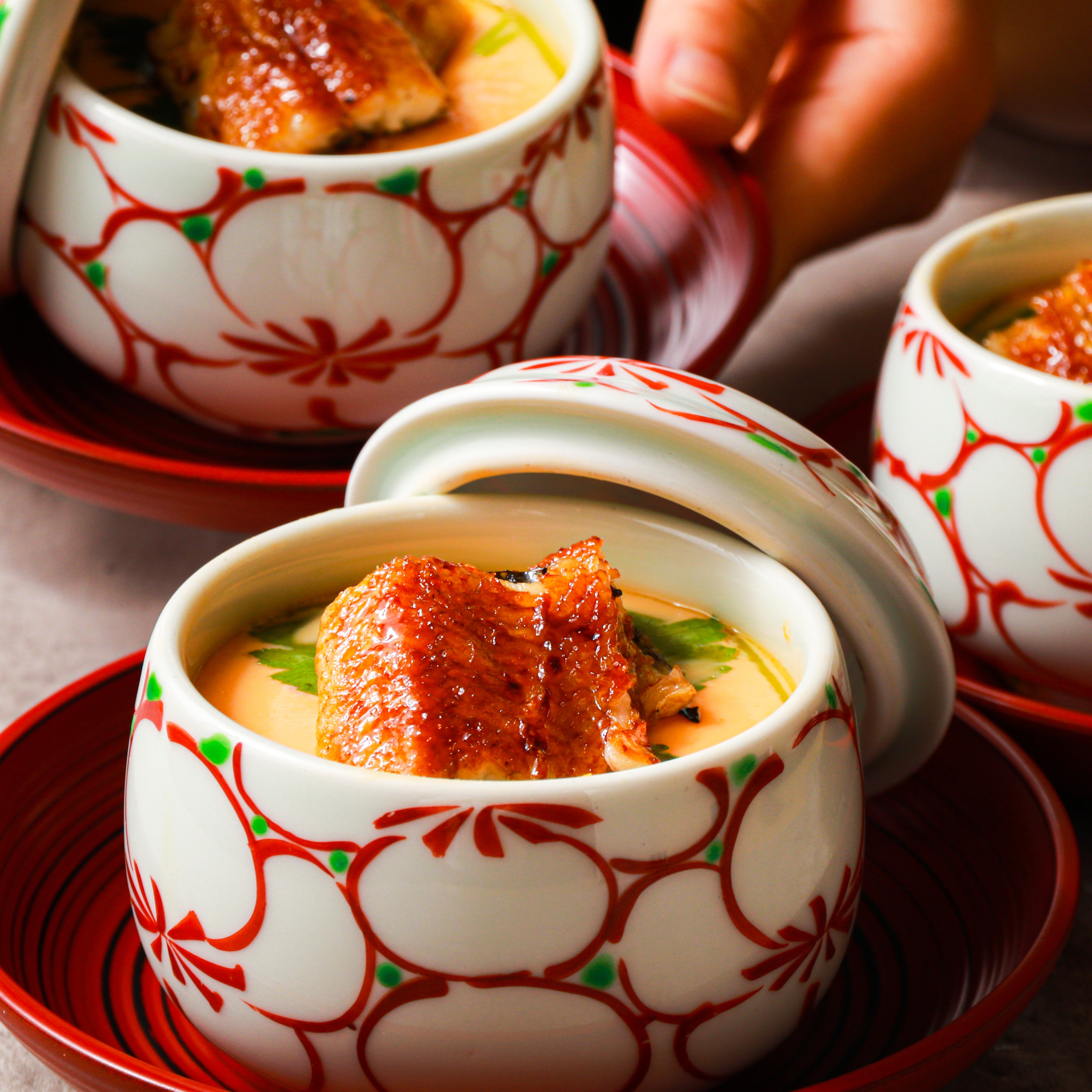 贅沢にうなぎの蒲焼をのせた茶碗蒸しです。