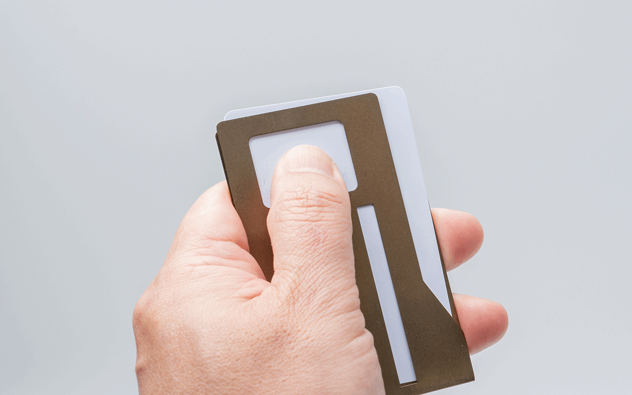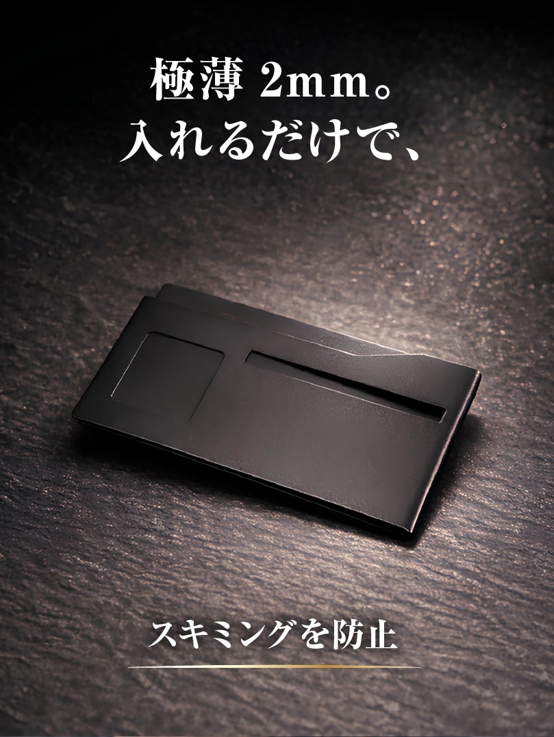 チタンの持つ電波遮断性と強度を活かし、スキミング防止と携帯性を両立しています。