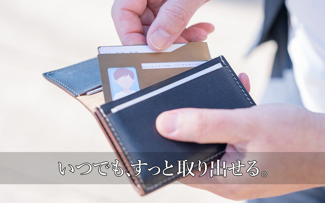 本製品は、「薄くて軽く、取り出しやすく、大切なカードを美しく守る」