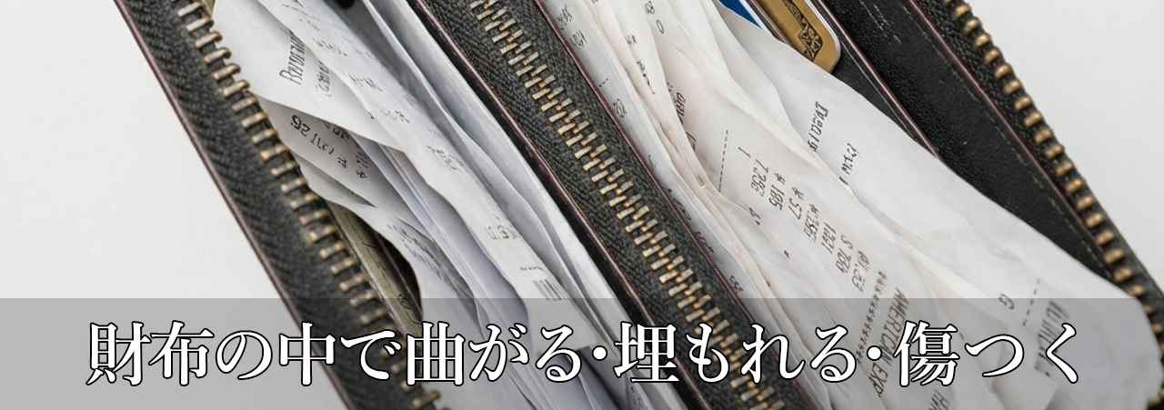 しかし、財布に入れると探しにくい、ふくらむ、曲がりや傷が気になる、ケースがかさばる。
