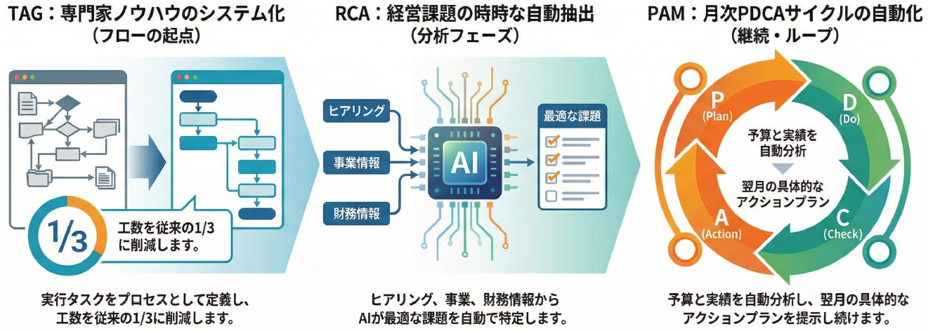 専門家のノウハウをタスクとして体系化し、AIと連携することで実行可能な形に変換。