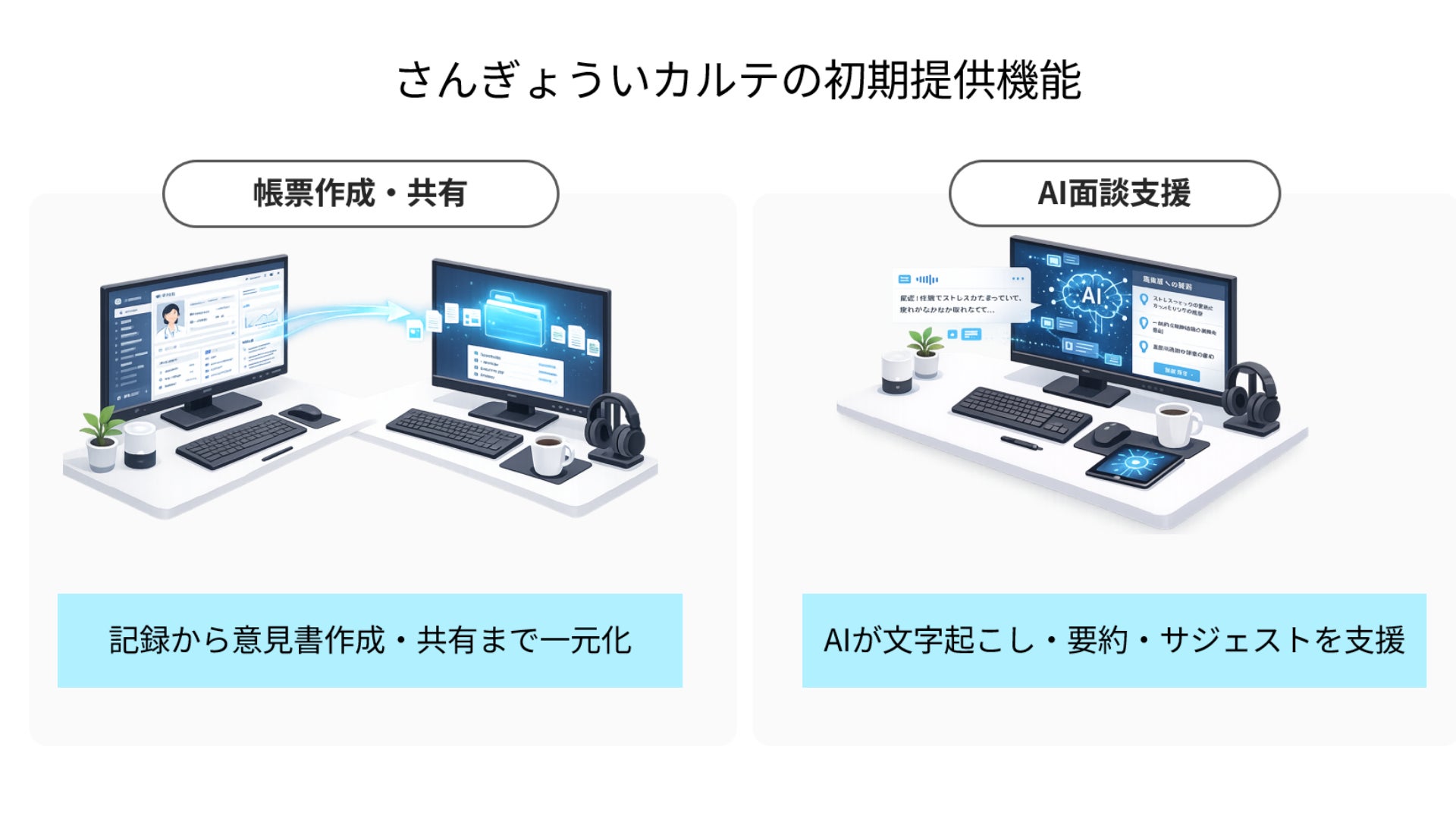 これまで当社は、産業医業務における記録作成や帳票作成、関係者間の情報共有といった業務の非効率性に着目し、「さんぎょういカルテ」の開発を進めてまいりました。産業医業務は専門性が高い一方で、アナログな運用や分断された業務フローが依然として多く残っており、実務負担の増大や情報管理の課題が顕在化しています。
