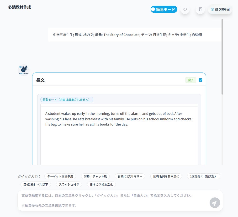 開隆堂出版株式会社(本社:東京都文京区、代表取締役社長:井口 廣之)は、中学校の英語科教員に向けた教材自動生成AIアプリケーション「kAIryuくん」を開発し、提供を開始いたしました。