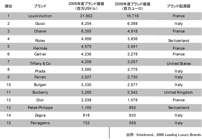 ※出所: Interbrand、 2008 Leading Luxury Brands