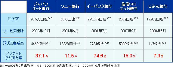 たのが「イーバンク銀行」(74.6%)となり、つづいて「ジャパンネット銀行」、「住信SBI