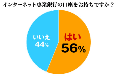 インターネット専業銀行口座を所有している割合は56%という結果となった。