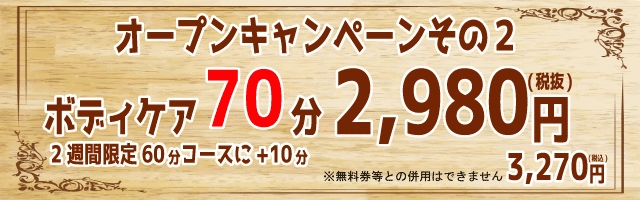 もみの匠新宿東口店では、オープンキャンペーンとしてお得なものを多数ご用意しております。