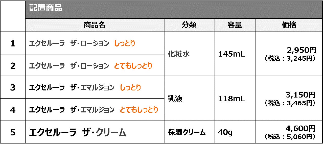 ・・・化粧水・乳液、それぞれ使用性の異なる2タイプを配置致します。